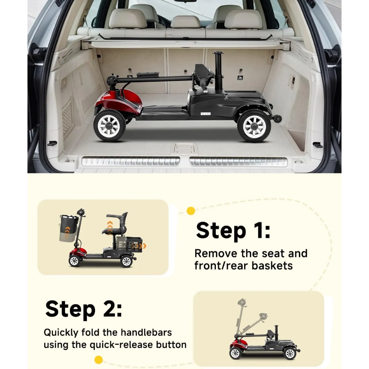 The Comfort Scooter brings ease and enjoyment to your daily travels. It features a swivel seat for effortless entry, spacious baskets for your necessities, and bright LED lighting for improved visibility. A reliable choice for everyday errands and short trips.